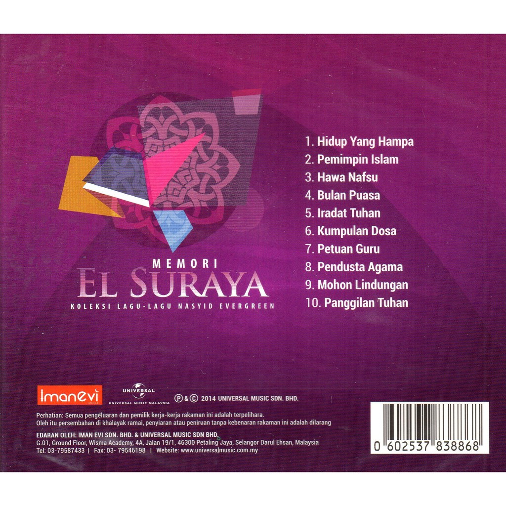 El Suraya Memori El Suraya Koleksi Lagu Lagu Nasyid Evergreen Islamic Cd Shopee Malaysia